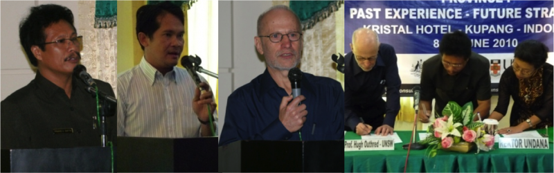 Opening by Prof. Frans Umbu Datta (Rector of UNDANA), Frans Likadja ST, MM (UNDANA), Prof. Hugh Outhred (UNSW ADRA/AusAID), and the signing of MOU between UNSW ADRA/AusAID, UNDANA and STTNAS (represented by Dr. Maria Retnanestri) for the seminar and workshop joint activities